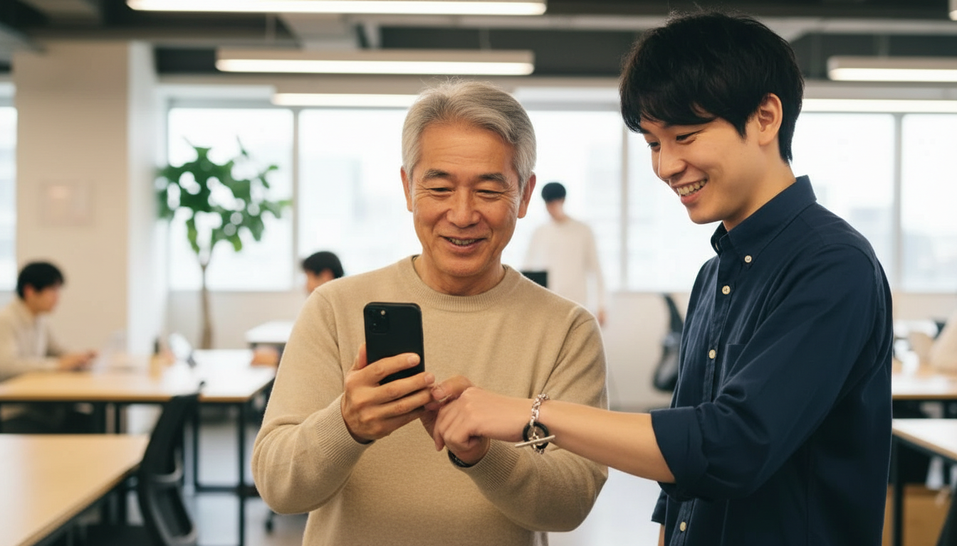 読み取りにアプリは必要ありません。PASMOを改札にかざすように、HelloRingをスマートフォンに、ただかざすだけで情報を共有できます。