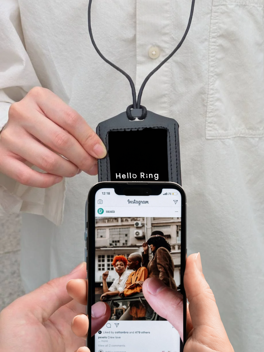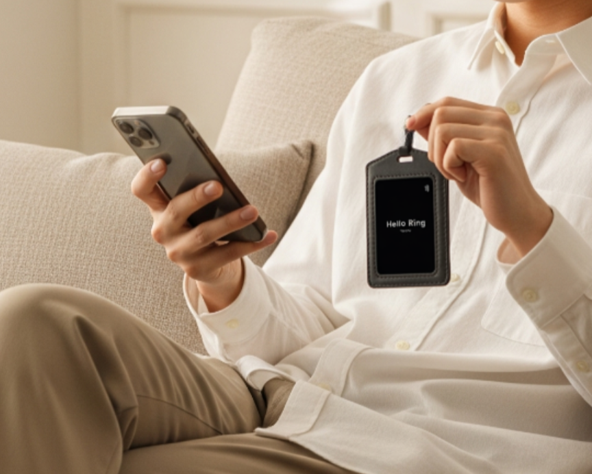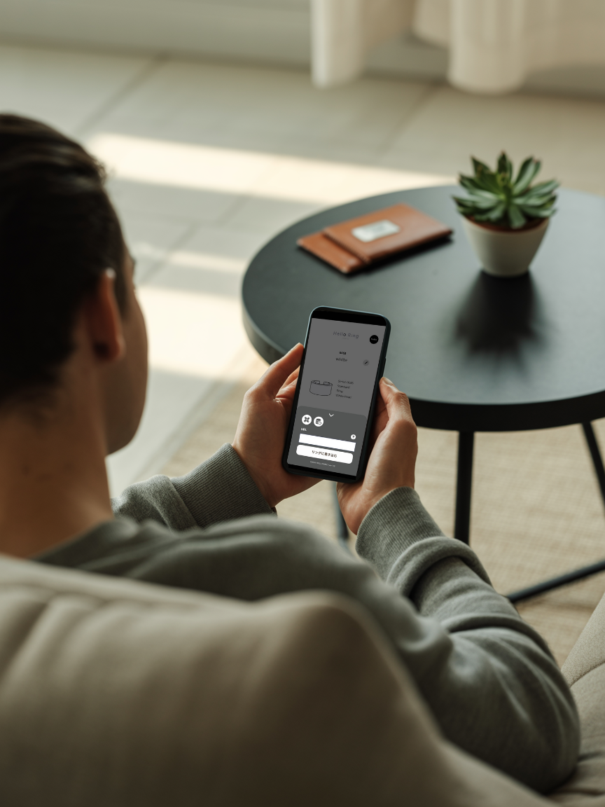 読み取りにアプリは必要ありません。PASMOを改札にかざすように、HelloRingをスマートフォンに、ただかざすだけで情報を共有できます。